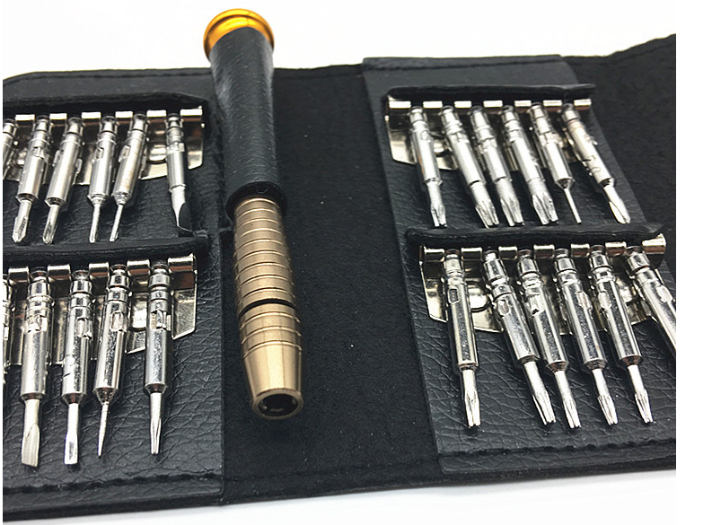 Với bộ tua vít 25 in 1 này đảm bảo bạn sẽ không còn phải lo lắng sửa chữa đồ điện tử khi gặp phải những con ốc, vít siêu nhỏ. Bộ tô vít ví da25in1mang lại cho bạn nhiều tiện lợi khi sửa chữa máy móc hay các thiết bị điện tử cỡ nhỏ trong gia đình. Bộ tua vít với đầu tua vít được làm từ chất liệu thép không gỉ nên rất bền chắc. Sản phẩm có nhiều kiểu đầu vít khác nhau như: đầu dẹt, tam giác, lục giác, 3 cạnh, 4 cạnh, 5 cạnh và 6 cạnh, mỗi dạng đều có đủ các cỡ từ lớn đến nhỏ nên rất dễ dàng cho bạn trong việc sửa chữa đồ đạc.