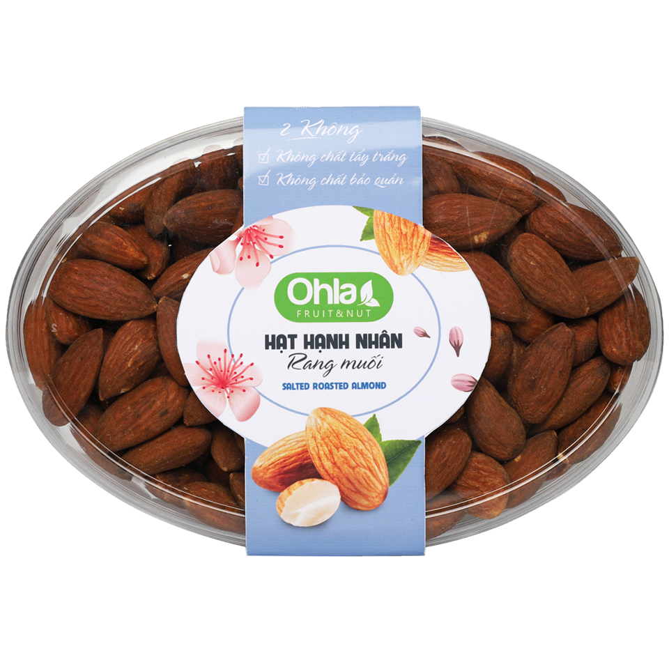 Hạnh Nhân Rang Muối Biển Ohla được chế biến từ nguyên liệu thiên nhiên gồm những hạt hạnh nhân được lựa chọn kỹ lưỡng từ Hoa Kỳ nên hương vị và các chất dinh dưỡng trong mỗi hạt đều được lưu giữ nguyên vẹn.