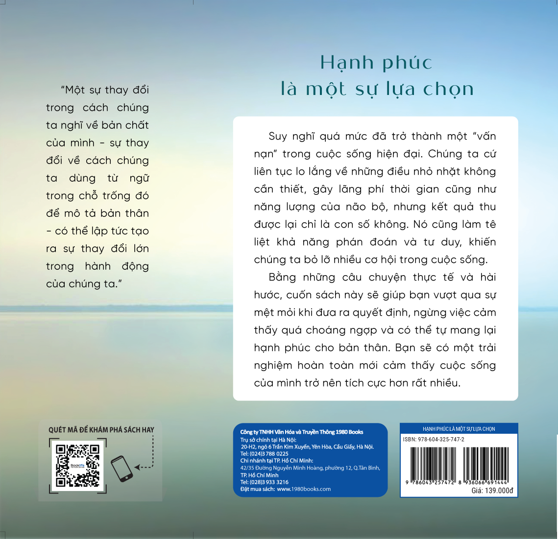 Với những câu chuyện cá nhân đầy trí tuệ, hài hước và thực tế, Hạnh phúc là một sự lựa chọn sẽ giúp chúng ta tìm ra được con đường đúng đắn, tìm thấy sự bình yên đích thực.
