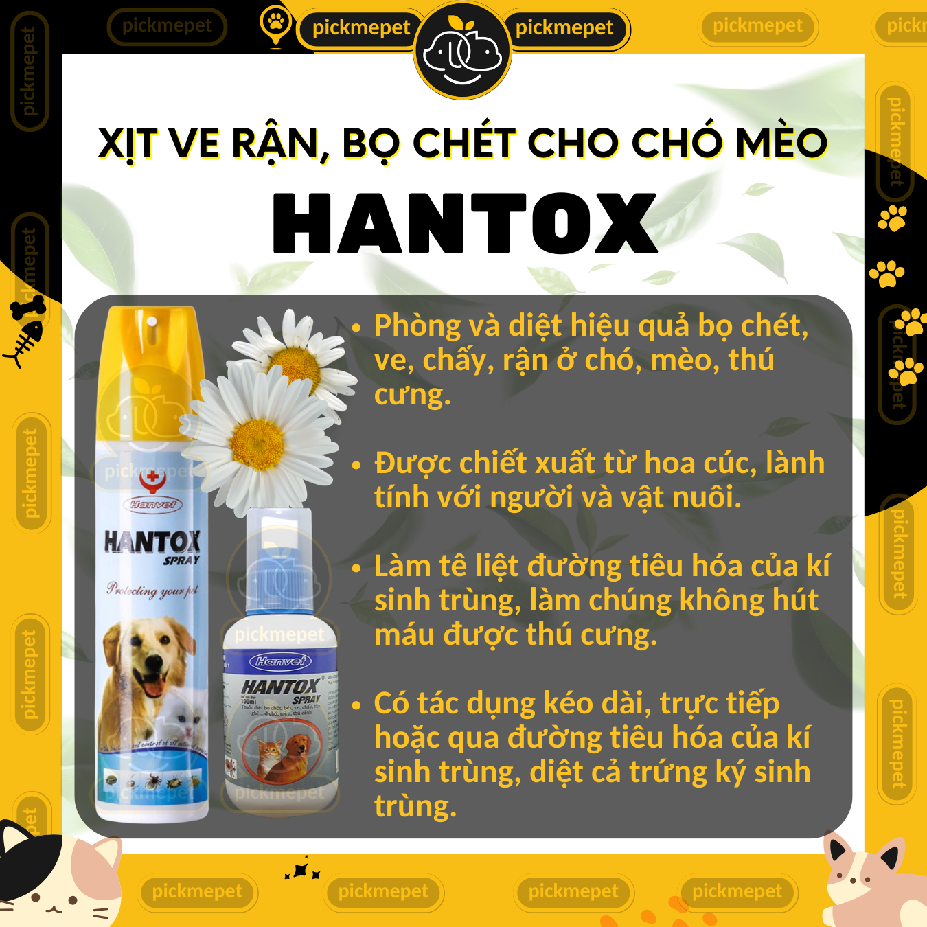 ✨Hantox Spray - Xịt Ve Rận, Bọ Chét, Ghẻ Cho CHÓ MÈO 100ml 300ml