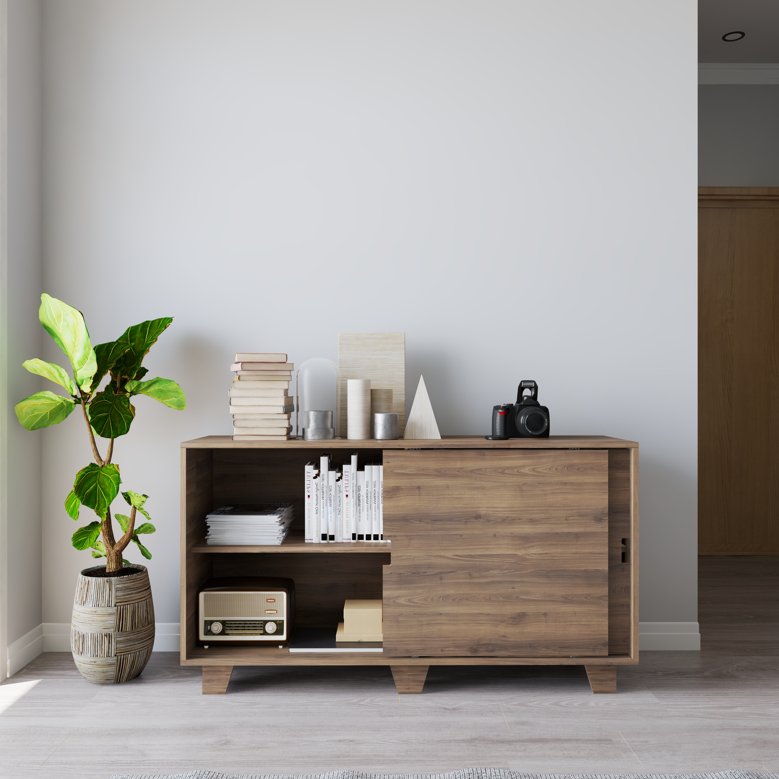Bàn sảnh ra vào gỗ SMLIFE Cacela được thiết kế theo phong cách đơn giản vừa là nơi trang trí tranh ảnh, bình hoa và cũng là nơi để lưu trữ các vật dụng cần