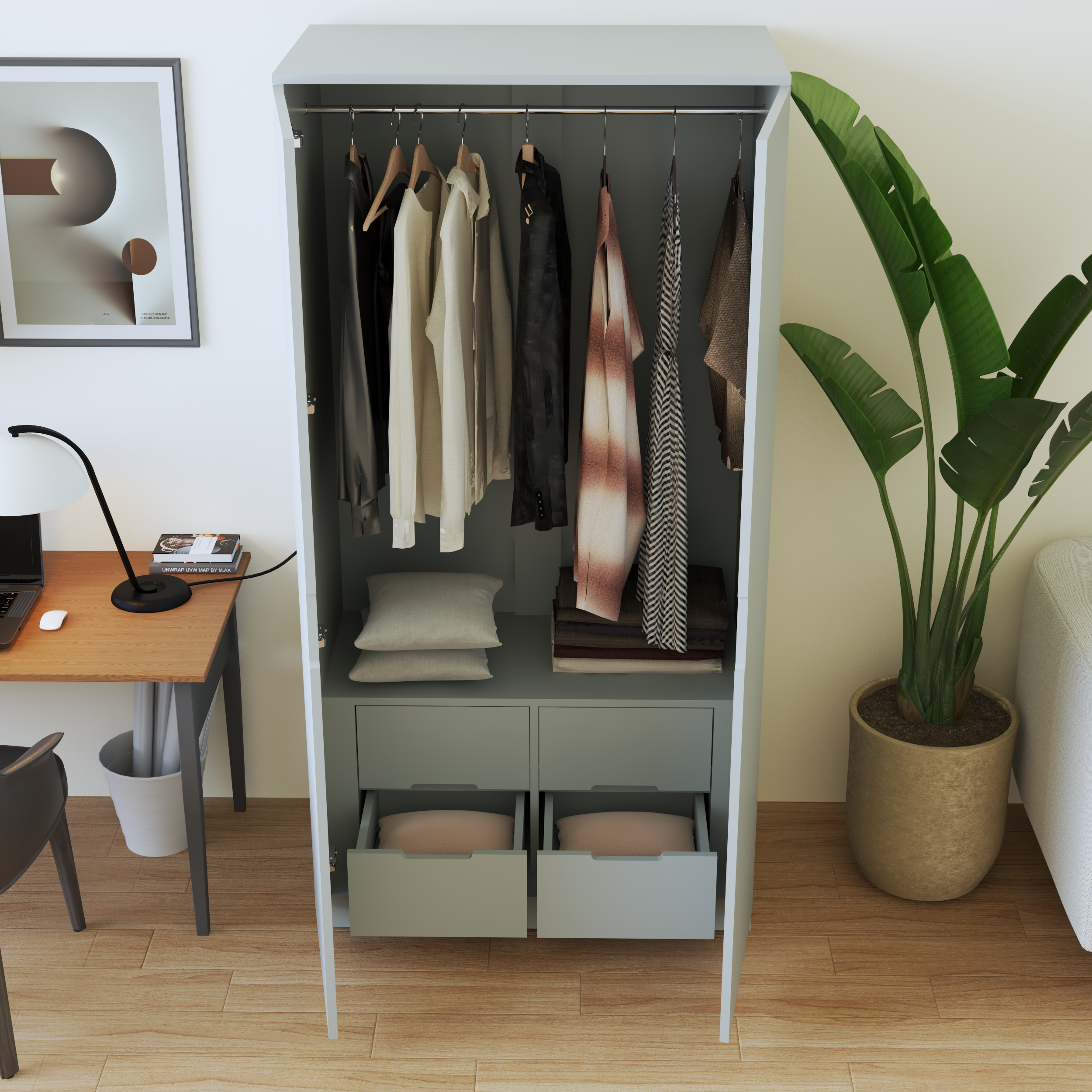 Tủ quần áo gỗ Brook tiếp nối dòng sản phẩm nội thất NHANH – Fast Furniture với phong cách đơn giản sẽ là điểm nhấn nổi bật cho phòng ngủ của bạn. Sản phẩm phù