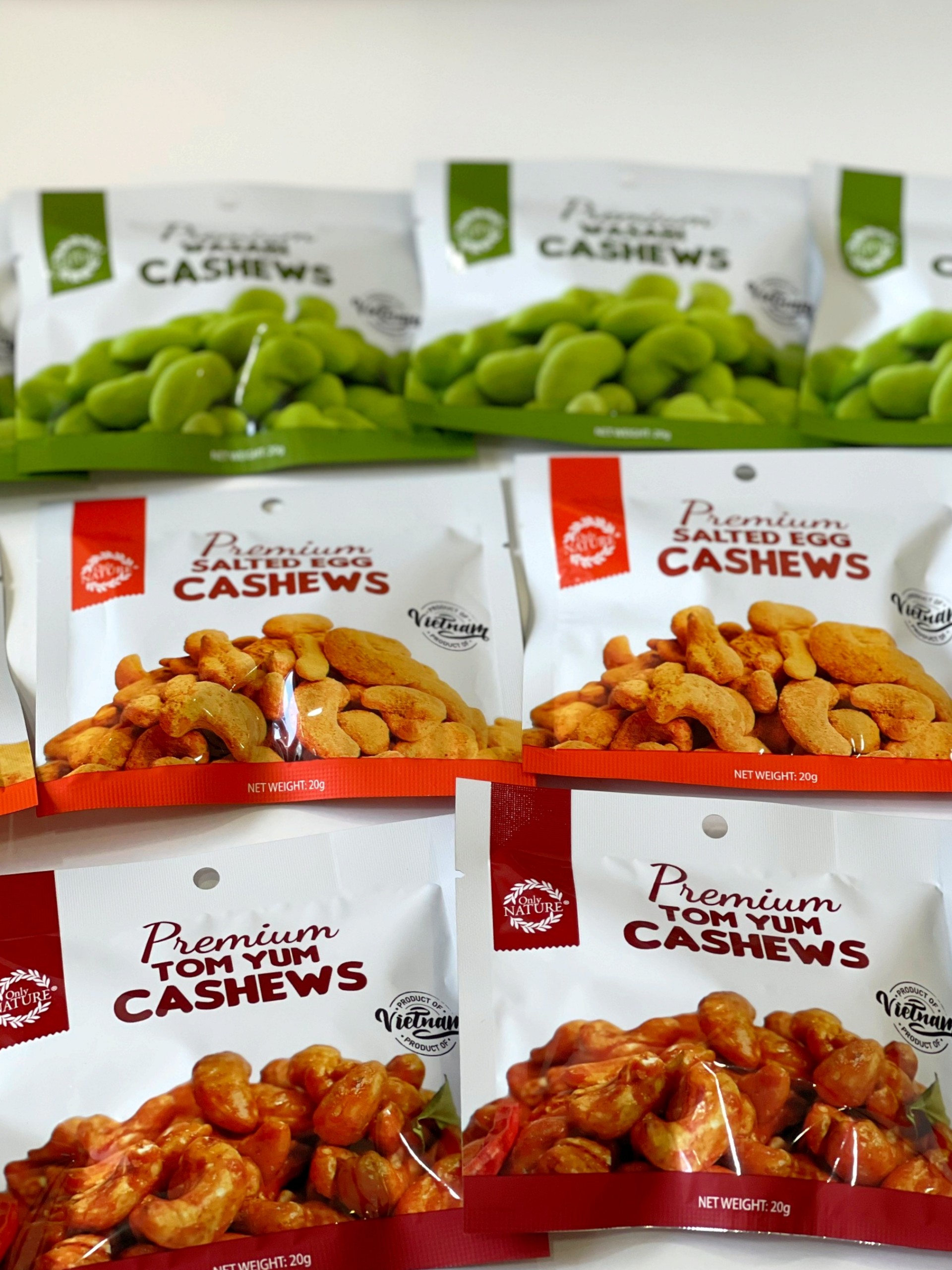 Hạt điều Tomyum là sự kết hợp hoàn hảo giữa hạt điều được tẩm ướp với các nguyên liệu chanh, sả, ớt, sốt T đã tạo nên một vị rất đặc trưng: lá chanh thanh mát thoảng vị, chút sả thơm thơm, chút ớt cay cay, lại một chút vị mằn mặn đậm đà không quá gắt.