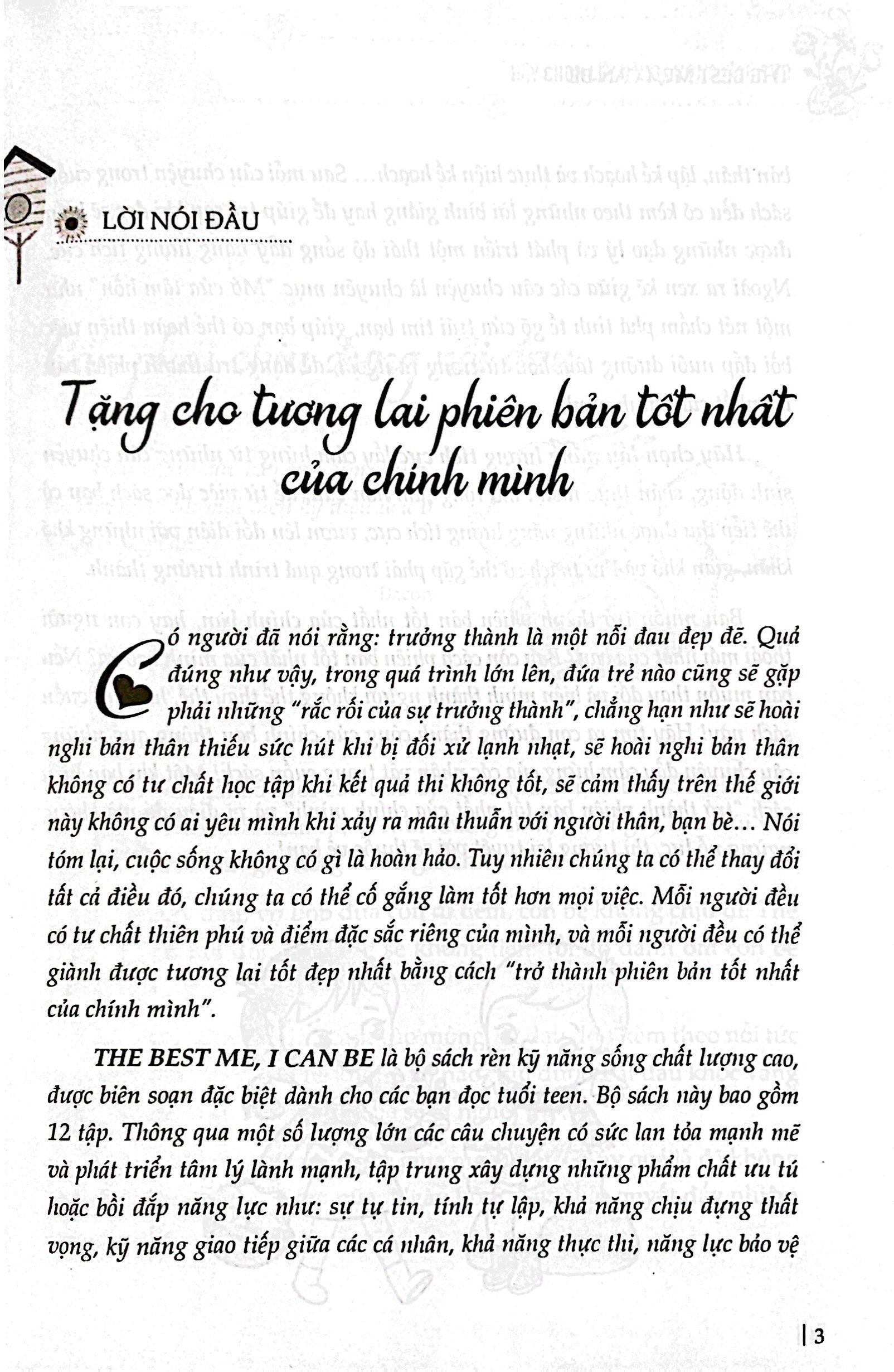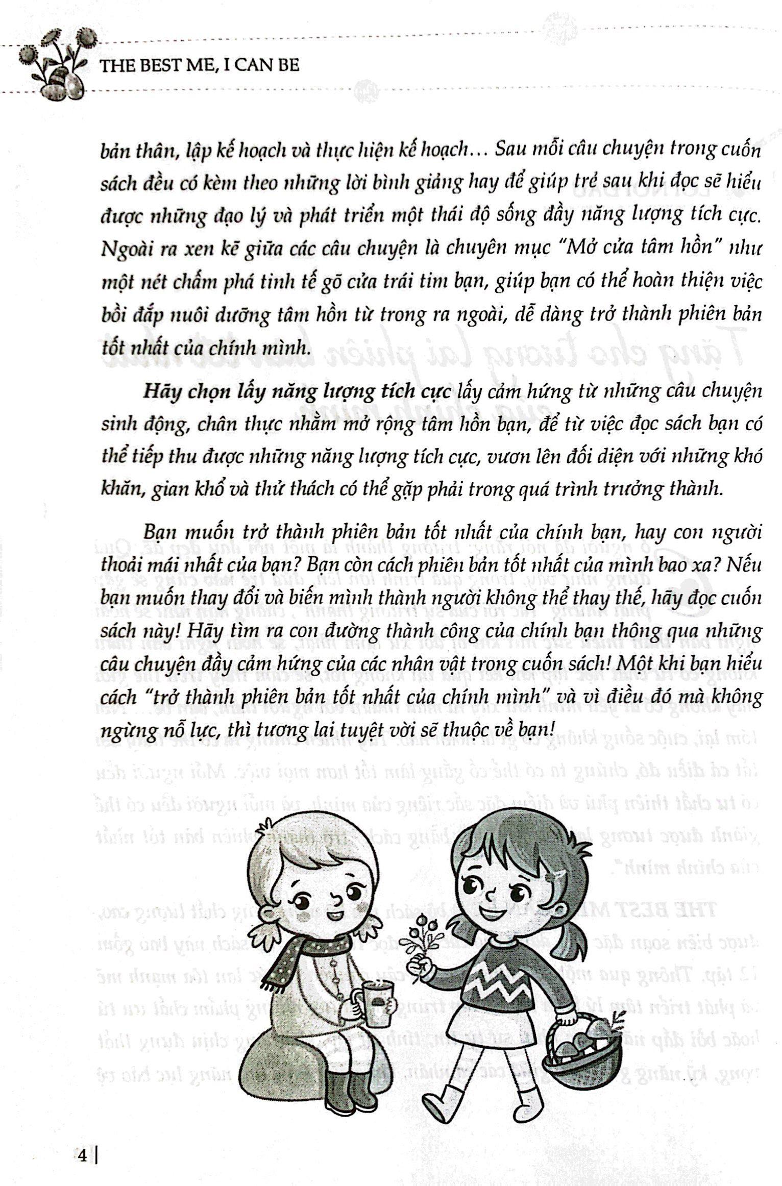 Mua tại TiktokThe Best Me, I Can Be là bộ sách rèn luyện kỹ năng sống chất lượng cao, được biên soạn đặt biệt dành cho các bạn tuổi teen. Bộ sách này gồm 12 tập. Thông qua một số lượng lớn các câu chuyện có sức lan tỏa mạnh mẽ và phát triển tâm lý lành mạnh, tập trung xây dựng những phẩm chất ưu tú và bồi đắp năng lực như: sự tự tin, tính tự lập, khả năng chịu đựng thất vọng, kỹ năng giao tiếp giữa các cá nhân, khả năng thực thi, nâng lực tự bảo vệ bản thân, lập kế hoạch và thực hiện kế hoạ