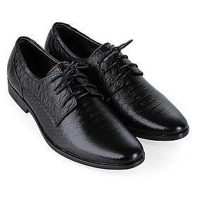 Giày tây nam Huy Hoàng da bò vân da trăn cột dây màu đen 7798