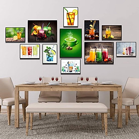 ✨(HCM) Bộ 11 khung ảnh treo tường nước ép, sinh tố trang trí quán cà phê kèm đinh treo