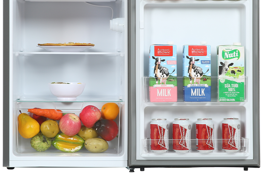 - Ngăn CoolZone trữ thực phẩm lạnh hơn. Thông tin chung Loại sản phẩm Tủ lạnh mini Dung tích (L) 94 Tần số (Hz) 50 Nguồn điện (V) 220-240 Nhãn năng lượng 5 sao Kích thước sản phẩm Chiều rộng sản phẩm 475 mm Độ sâu tủ bao gồm cánh tủ và tay nắm cửa 448 mm Độ sâu khi cửa mở 90° 960 mm Chiều cao sản phẩm 840 mm Trọng lượng sản phẩm (kg) 20 Kích thước đóng gói Chiều rộng đóng thùng 495 mm Chiều sâu đóng thùng 468 mm Chiều cao đóng thùng 872 mm Trọng lượng phủ bì (kg) 22 Thiết kế Cách điều khiển Điều khiển cơ Màu sắc Đen bóng Thông số điện năng Tổng công suất trên năm (kWh/năm) 182
