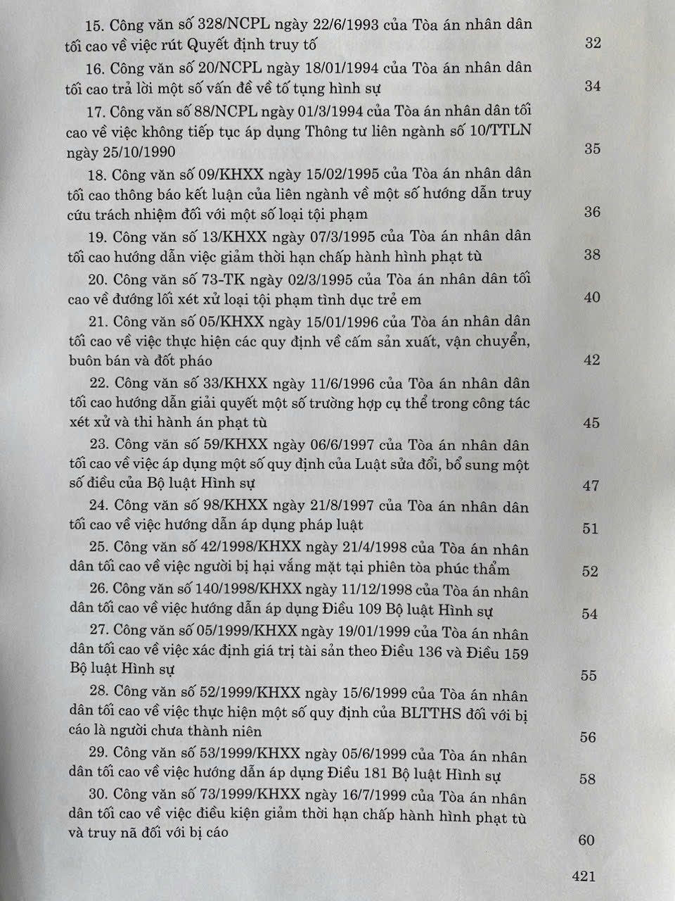 Hệ thống Công văn hướng dẫn nghiệp vụ của Tòa án nhân dân tối cao trong lĩnh vực Hình sự và Tố tụng Hình sự (từ năm 1987 đến năm 2023)