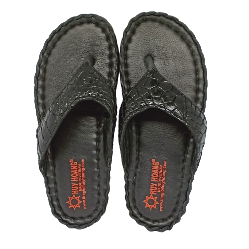 - Dép nam Huy Hoàng được làm từ chất liệu da cá sấu cao cấp nên càng sử dụng lâu bề mặt sẽ càng bóng đẹp tự nhiên. Da cá sấu mềm mại sẽ hạn