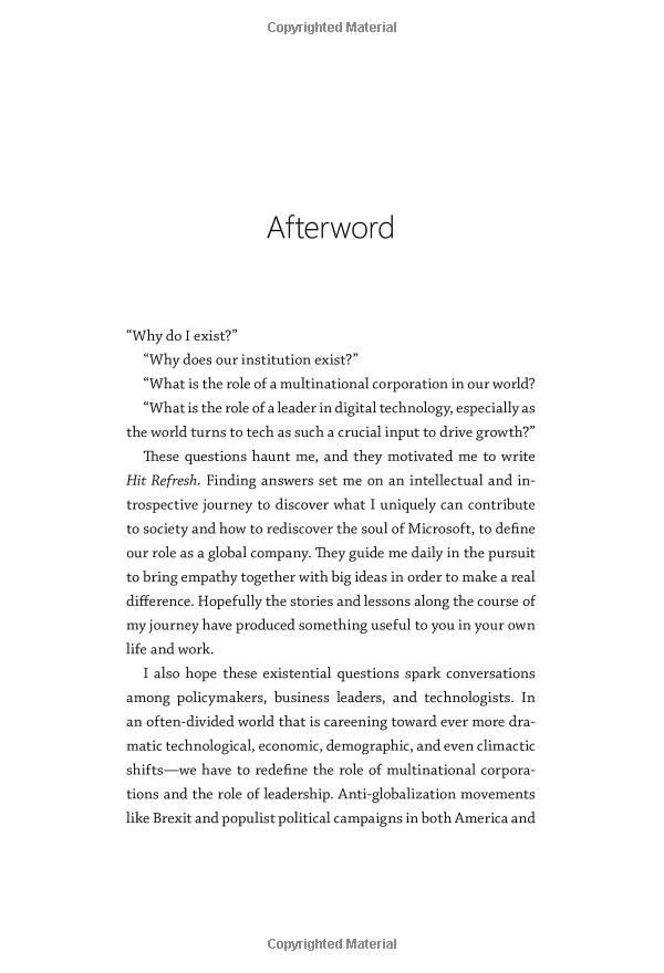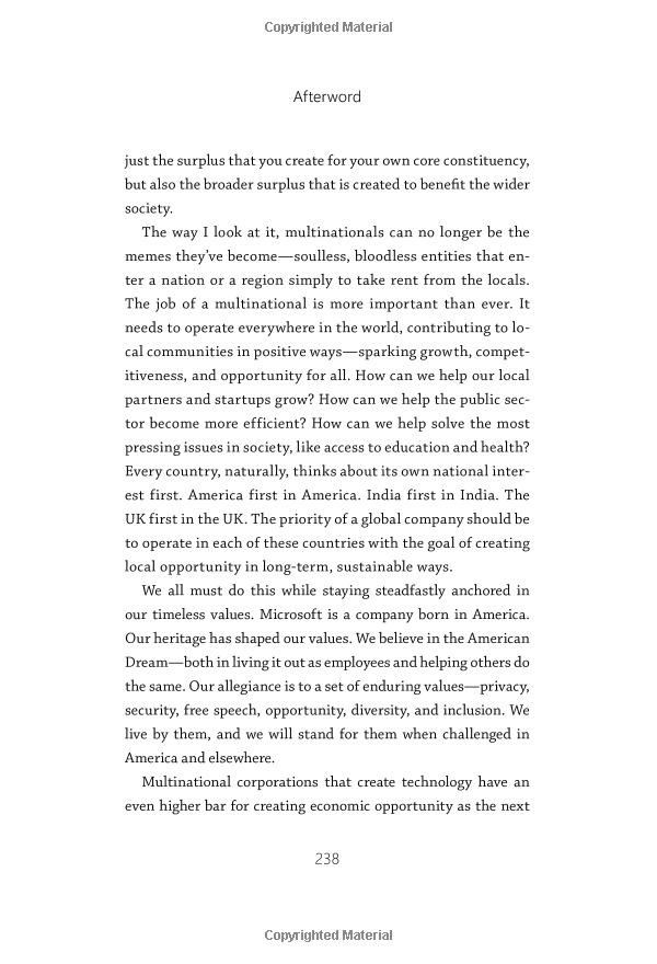 The Quest to Rediscover Microsoft’s Soul and Imagine a Better Future for Everyone Microsoft’s CEO tells the inside story of the company’s continuing transformation, while tracing his own journey from a childhood in India to