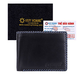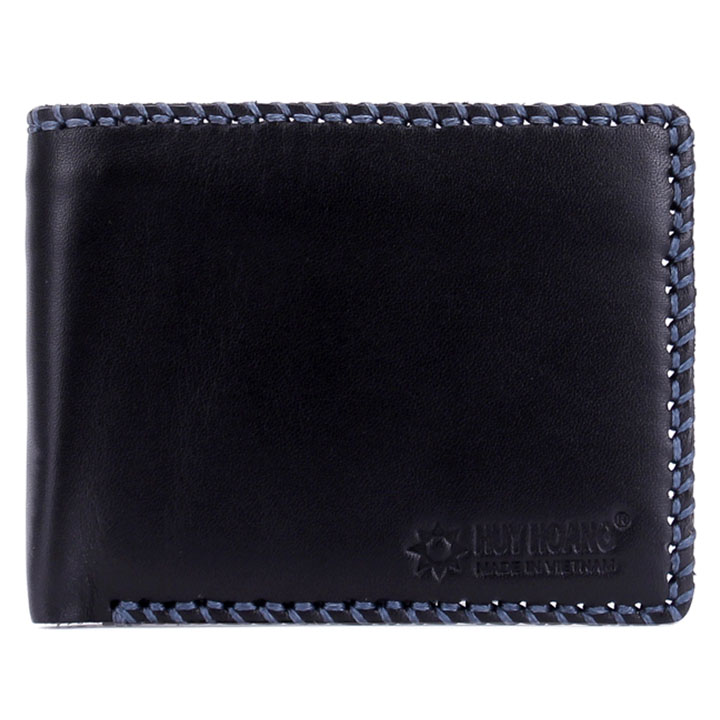 Ví/Bóp nam Huy Hoàng da bò viền chỉ màu đen 2129