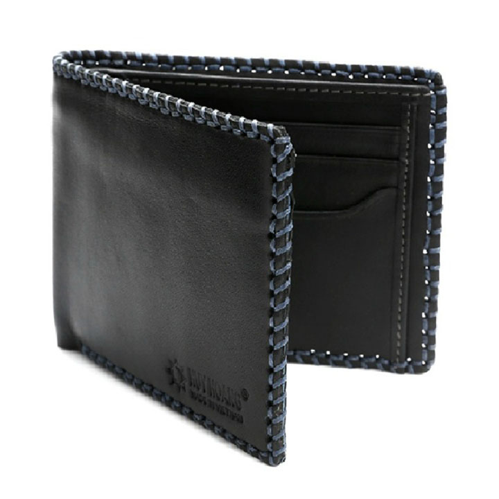 Ví/Bóp nam Huy Hoàng da bò đan viền màu đen 2135