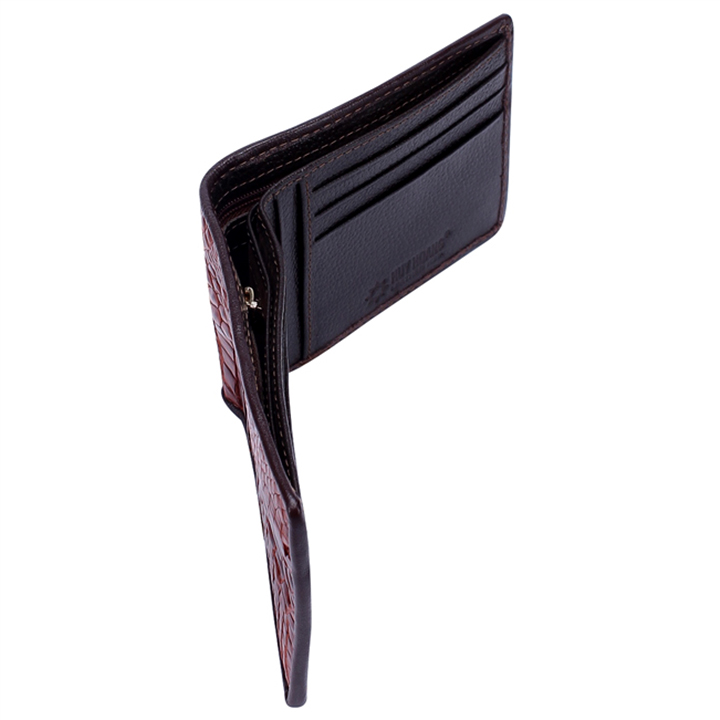 Ví/Bóp nam Huy Hoàng da bò vân cá sấu màu nâu đỏ 2148