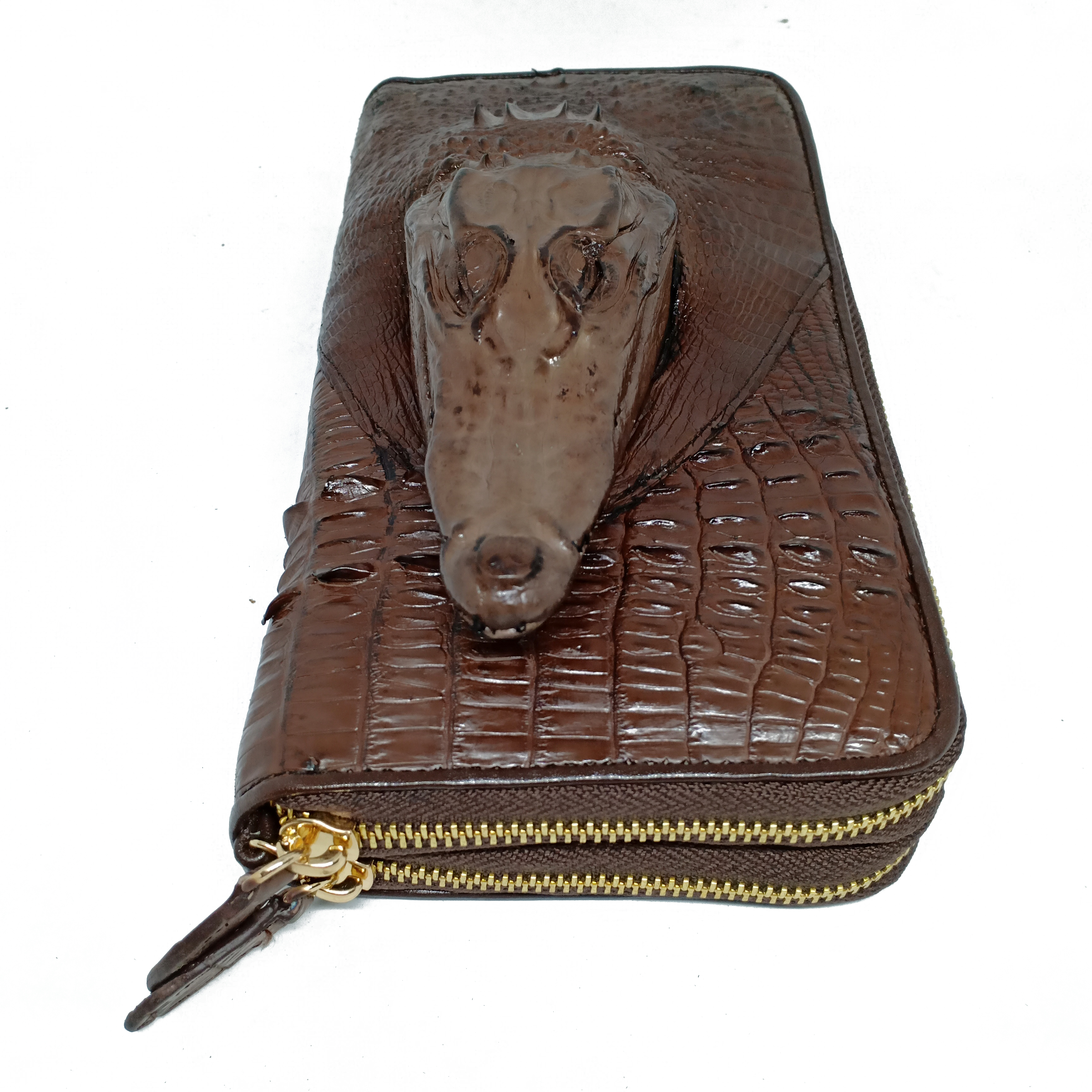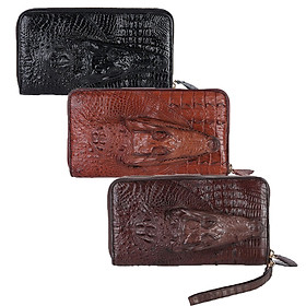 Ví da cá sấu cầm tay 2 ngăn khoá kéo | Ví cầm tay màu nâu đỏ