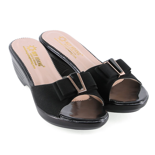 - Dép nữ cao gót quai ngang một bản TRường Hải màu đen gót vuông 8cm da mềm DN139 thiết kế với kiểu dáng ôm chân, thon gọn, thoải mái di chuyển mà không lo