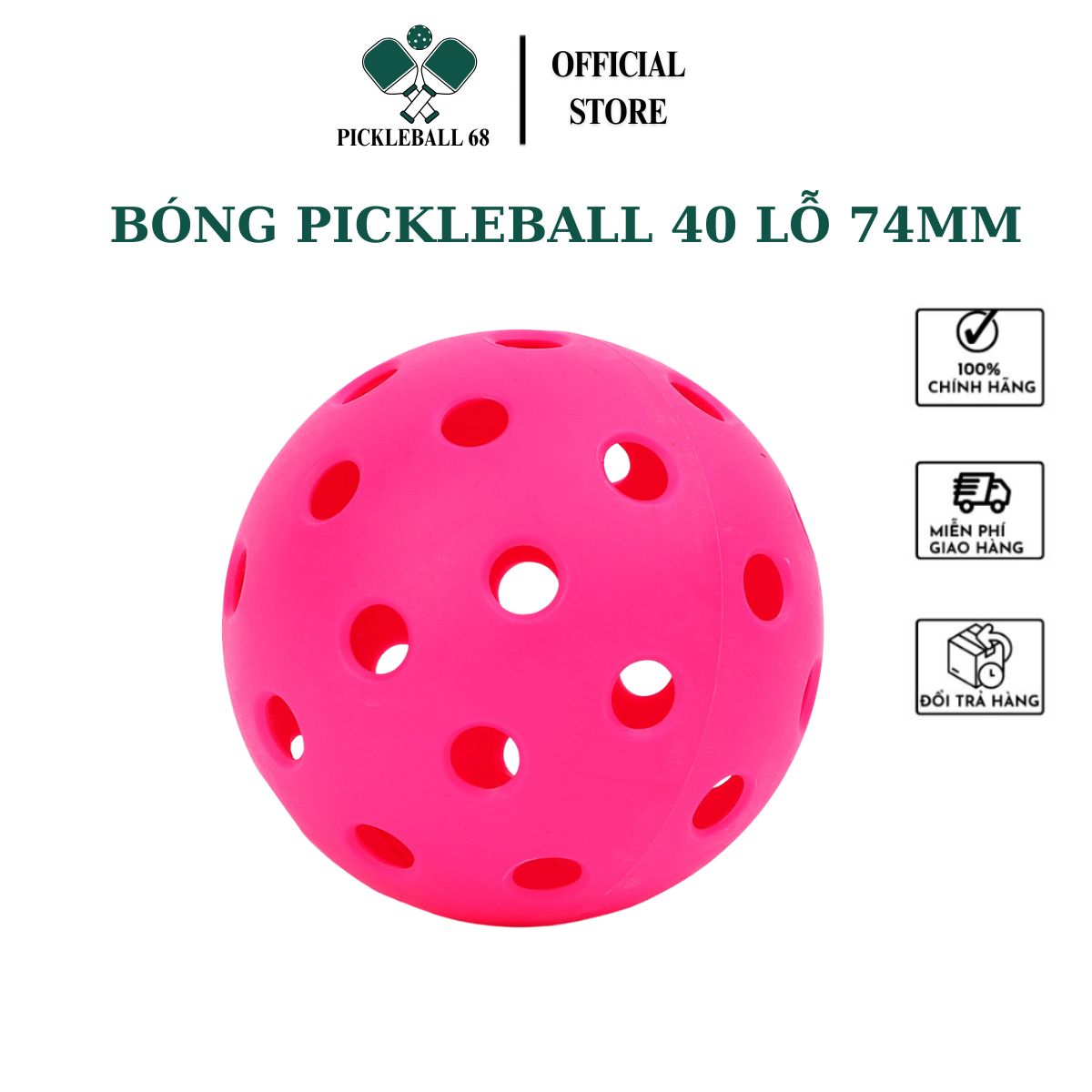 Cam kết sản phẩm: Bóng Pickleball Ngoài Trời 40 Lỗ Chính Hãng Pickleball68 Lựa Chọn Hoàn Hảo Cho Tập Luyện