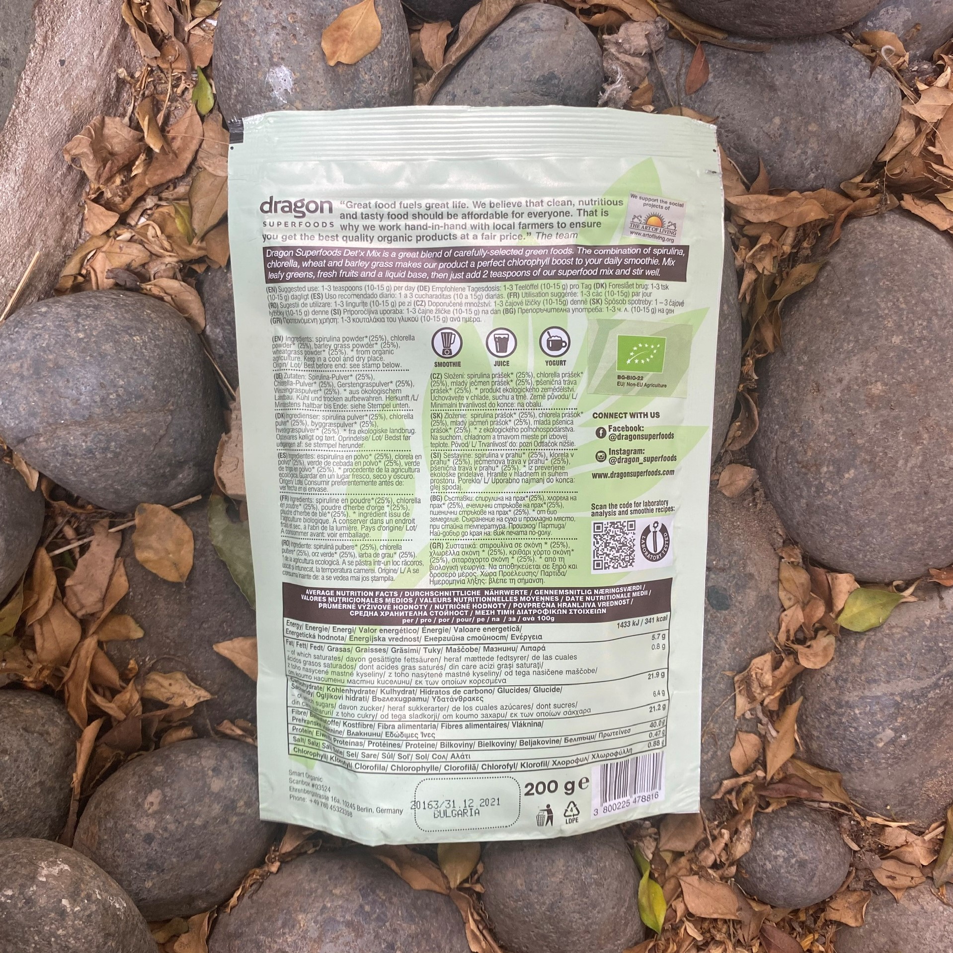 ✨Hỗn hợp bột xanh detox hữu cơ Green detox organic Dragon Superfoods 200g (spirulina, chlorella, cỏ lúa mì, cỏ lúa mạch)