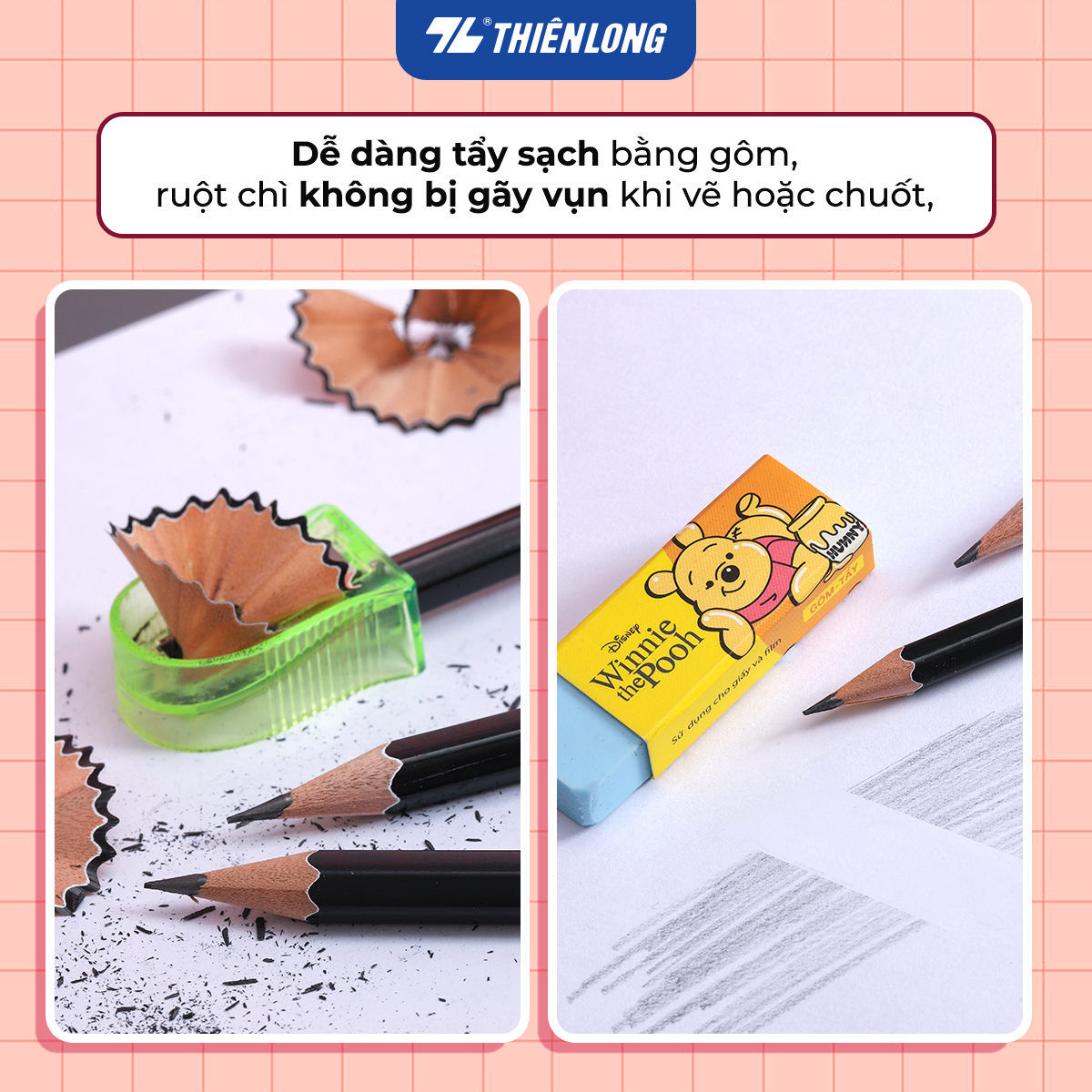 - Độ cứng ruột chì: HB - cho nét vẽ sắc nét, viết trơn êm, nét viết ra đều.
