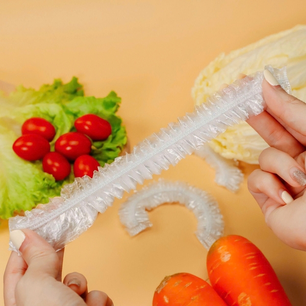 Chất liệu nhựa PE cao cấp dẻo dai Thiết kế thông minh với viền bo chun co giãn cực tốt. Dễ dàng bọc kín miệng các loại bát, tô, đĩa, hộp,... mà không cần kéo