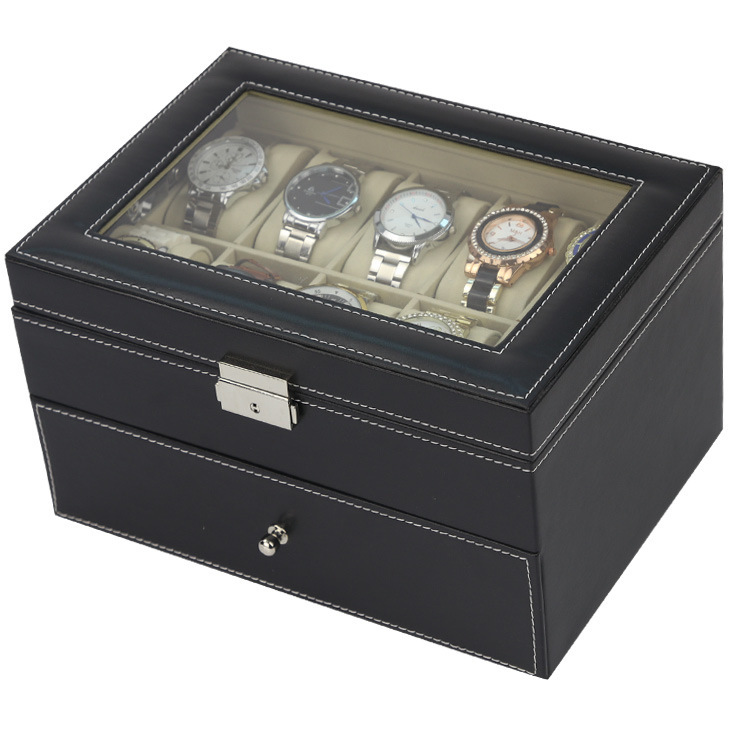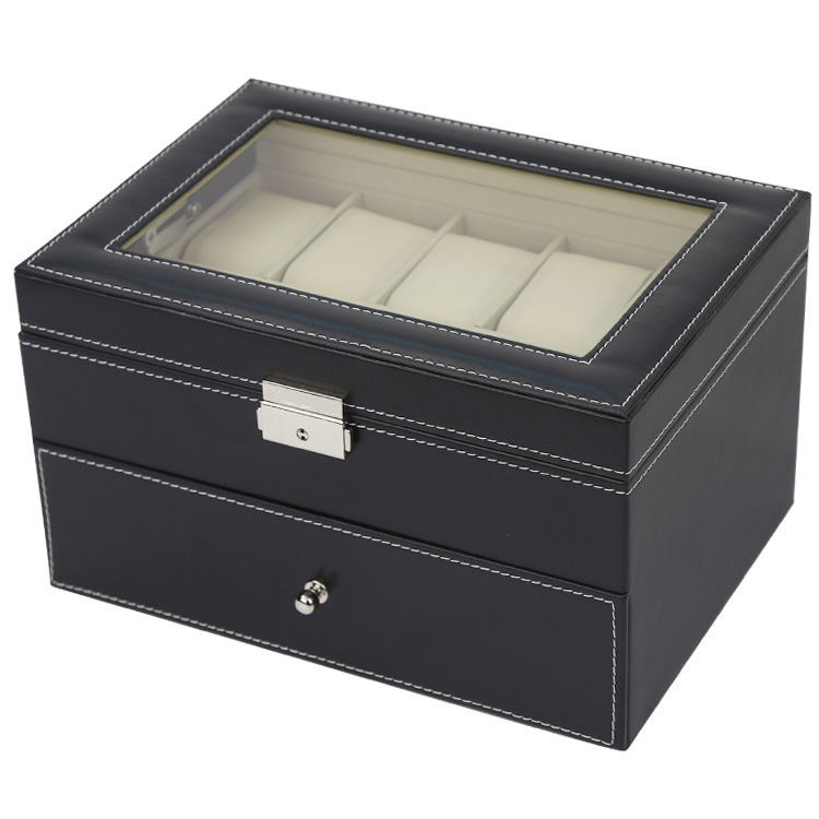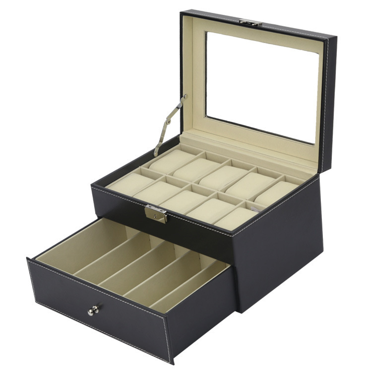 Hộp 2 tầng đựng đồng hồ và trang sức vỏ da carbon màu đen #hộp #hopdungdongho #hopdungtrangsuc