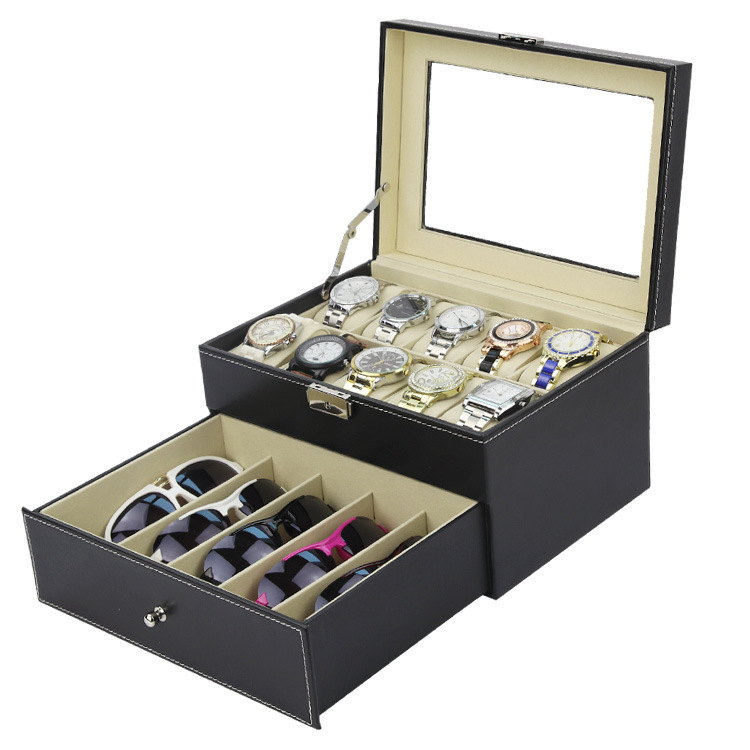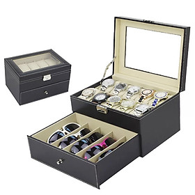 ✨Hộp 2 Tầng Đựng Đồng Hồ Và Mắt Kính SAIKE SAIKE S555 Vỏ Da Màu Đen