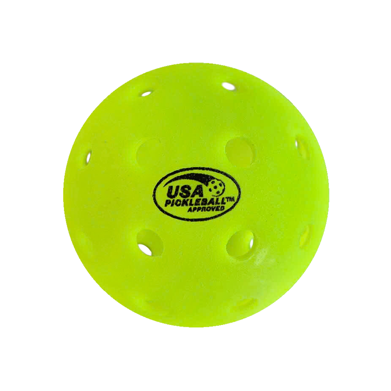 Bóng Pickleball AK-X đạt chứng nhận USA Pickleball Approved sử dụng vật liệu PE cao cấp được đúc nguyên khối, 40 lỗ. Trọng lượng, kích thước và độ nảy tiêu chuẩn ngoài trời. Bóng có đường bay ổn định, bám mặt vợt và rất bền.