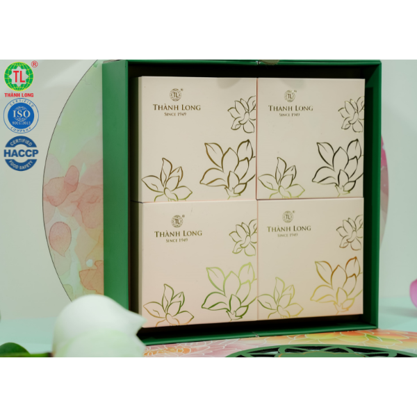 Bộ hộp Bánh trung thu Trường Phúc - Thành Long gồm 4 bánh: Nhân thập cẩm vi cá hải sản ( 220g ) Nhân hạt sen macca ( 220g ) Nhân trà xanh hạnh nhân