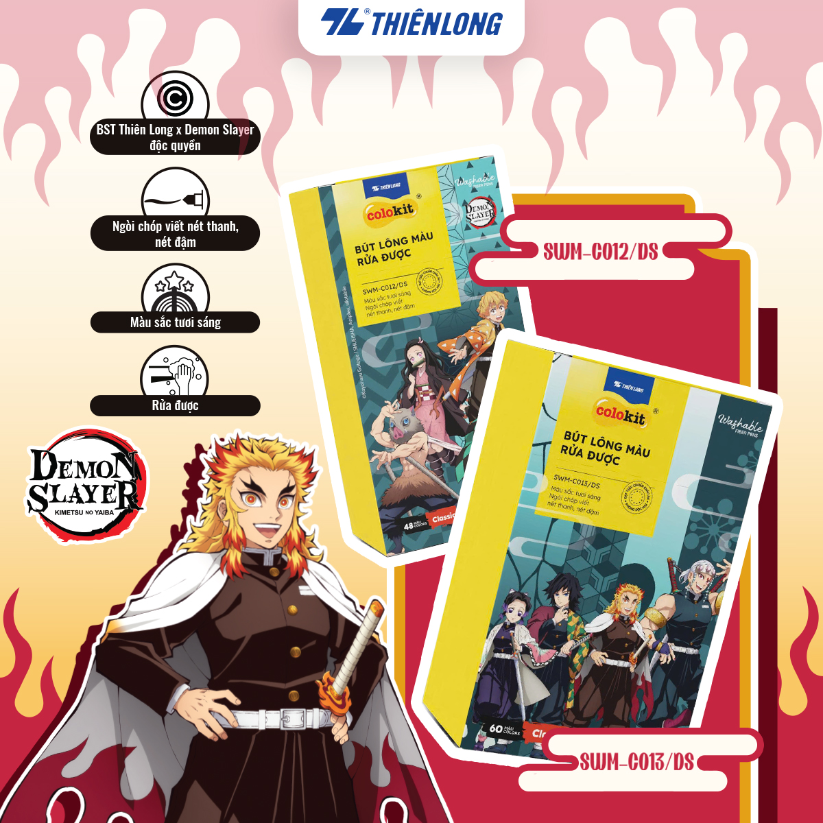 ✨Hộp Bút Lông 48/60 Màu Thiên Long Fiber Pen Washable - Phiên bản Demon Slayer