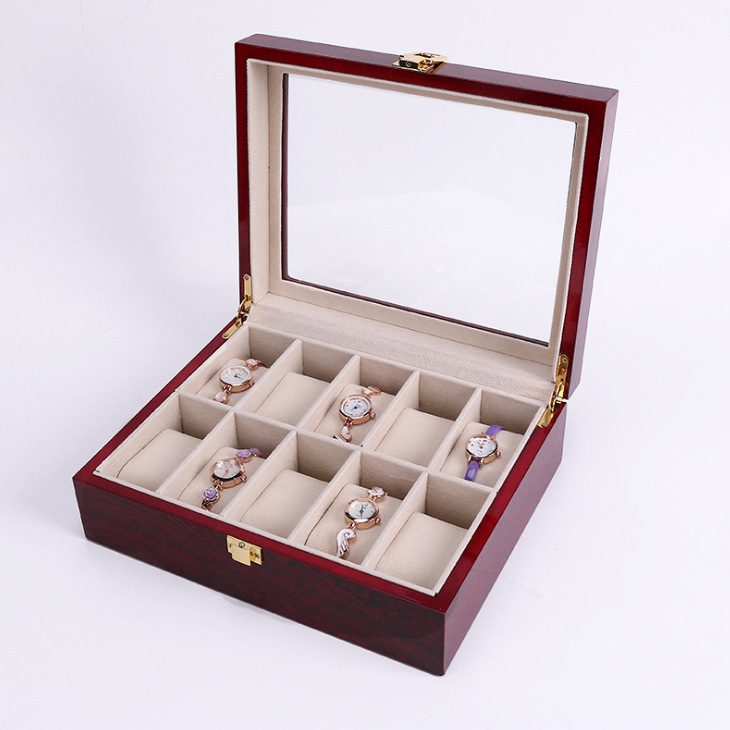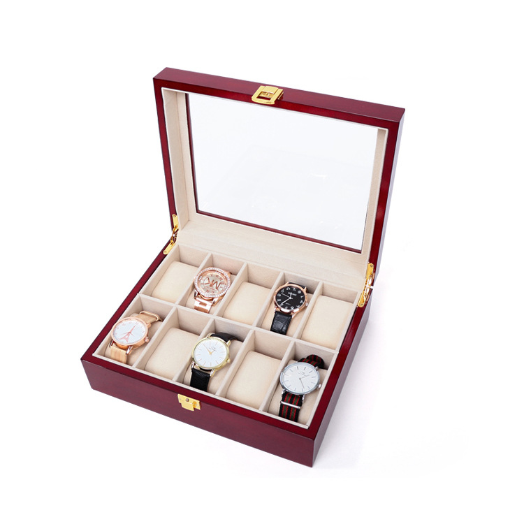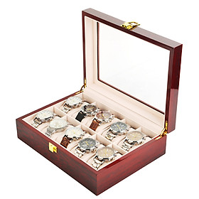 ✨Hộp Đồng Hồ 10 Chiếc SAIKE SAIKE S101 Vỏ Gỗ Sơn Phủ Màu Đỏ Vân Gỗ