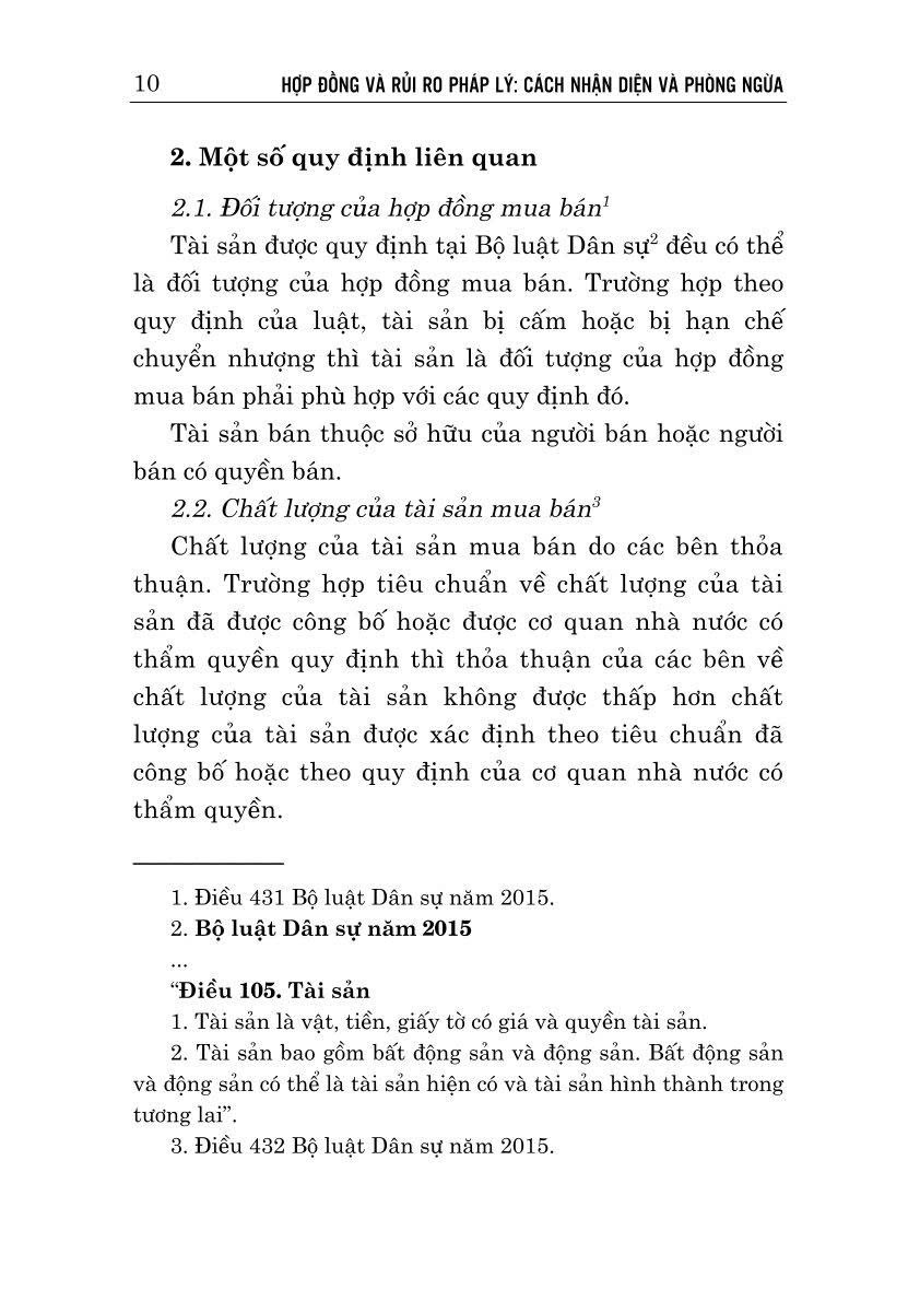 Nhằm giúp bạn đọc có được các thông tin hữu ích về vấn đề trên, Nhà xuất bản Chính trị quốc gia Sự thật xuất bản cuốn sách Hợp đồng và rủi ro pháp lý: Cách nhận diện và phòng ngừa, do Luật sư Trương Ngọc Liêu biên soạn. Cuốn sách trình bày những quy định về các loại hợp đồng thông dụng (hợp đồng mua bán, tặng cho, vay mượn, ủy quyền tài sản,...), các loại hợp đồng đặc thù (hợp đồng liên quan đến bất động sản, bảo hiểm); phân tích và làm rõ những rủi ro phát sinh thường gặp, đưa ra một số biện pháp kiểm soát, phòng ngừa rủi ro khi soạn thảo, ký kết hợp đồng.