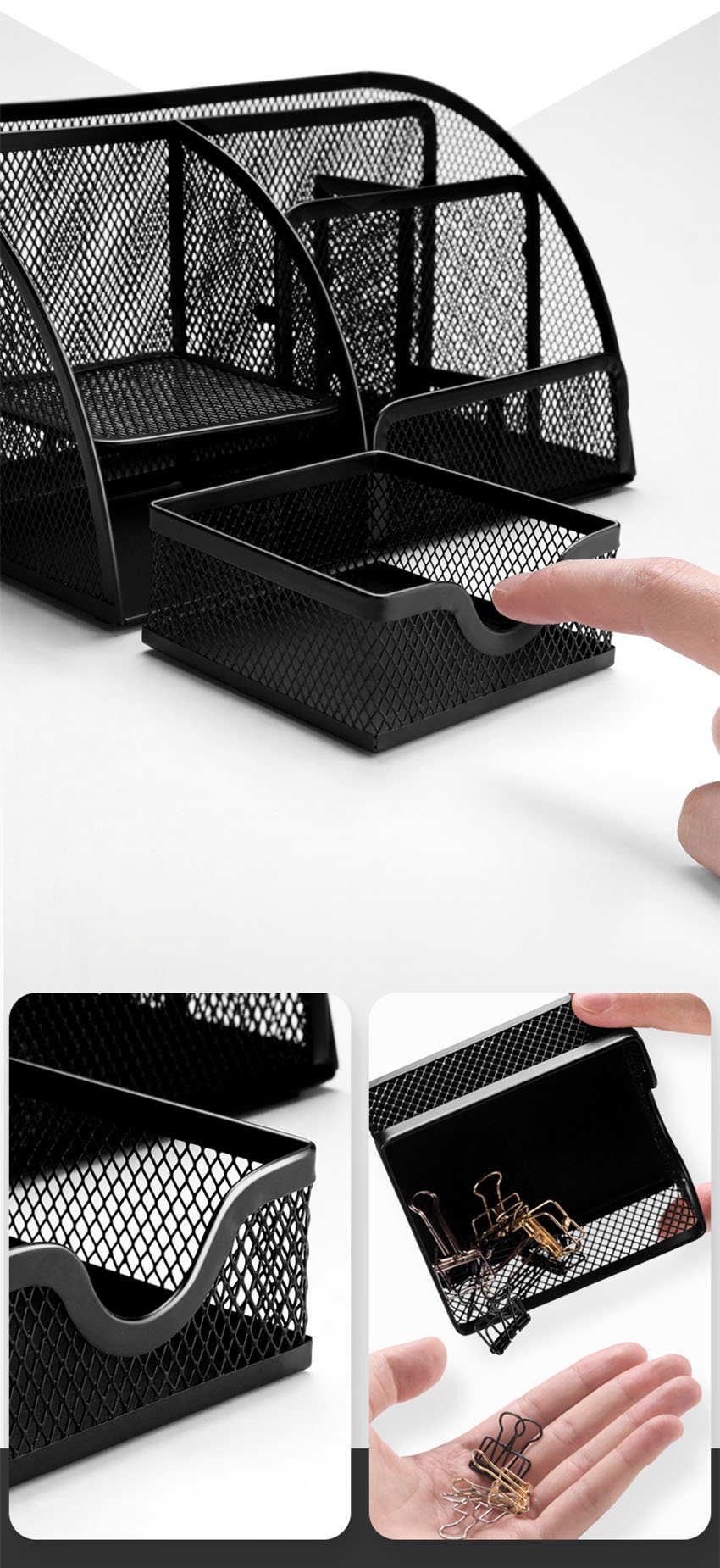 - Sản phẩm được làm từ sắt sơn tĩnh điện, thanh lịch và trang nhã, nhiều màu sắc lựa chọn - Ống cắm bút dạng lưới khô thoáng, tránh ẩm mốc. - Cắm bút giúp