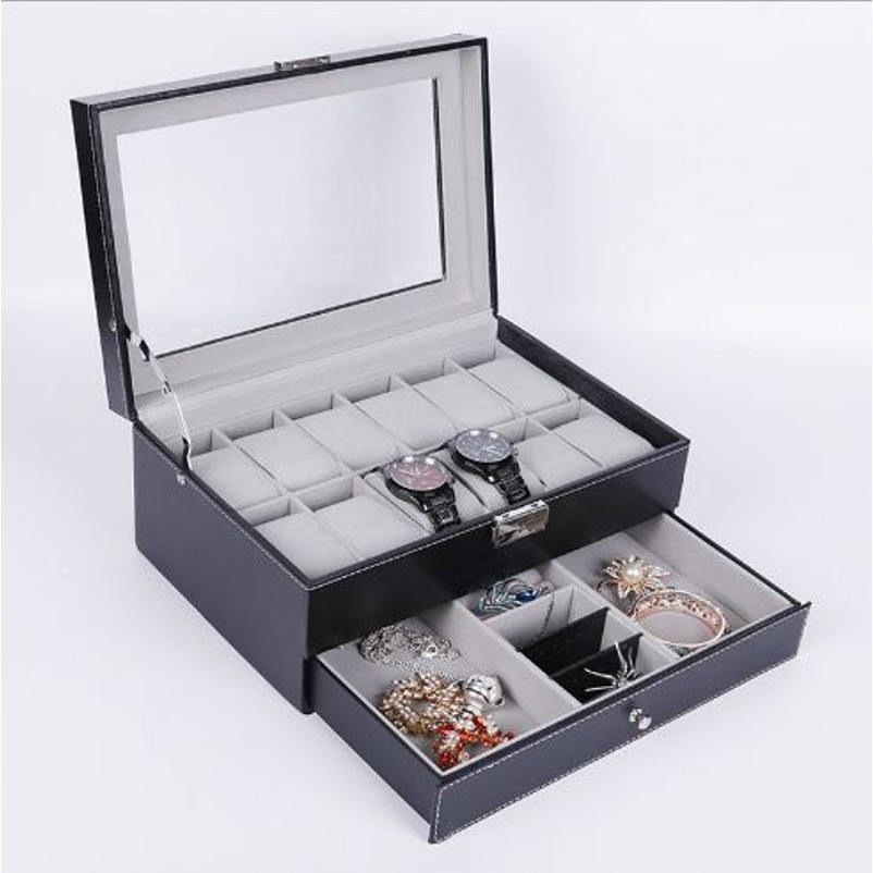 Hộp Đựng Đồng Hồ Và Trang Sức 2 Tầng - 33 x 20 x 13cm - Hệ thống, sắp xếp đồng hồ và trang sức hợp lý, không còn cảnh bừa bãi, thiếu ngăn nắp trong góc phụ kiện của bạn