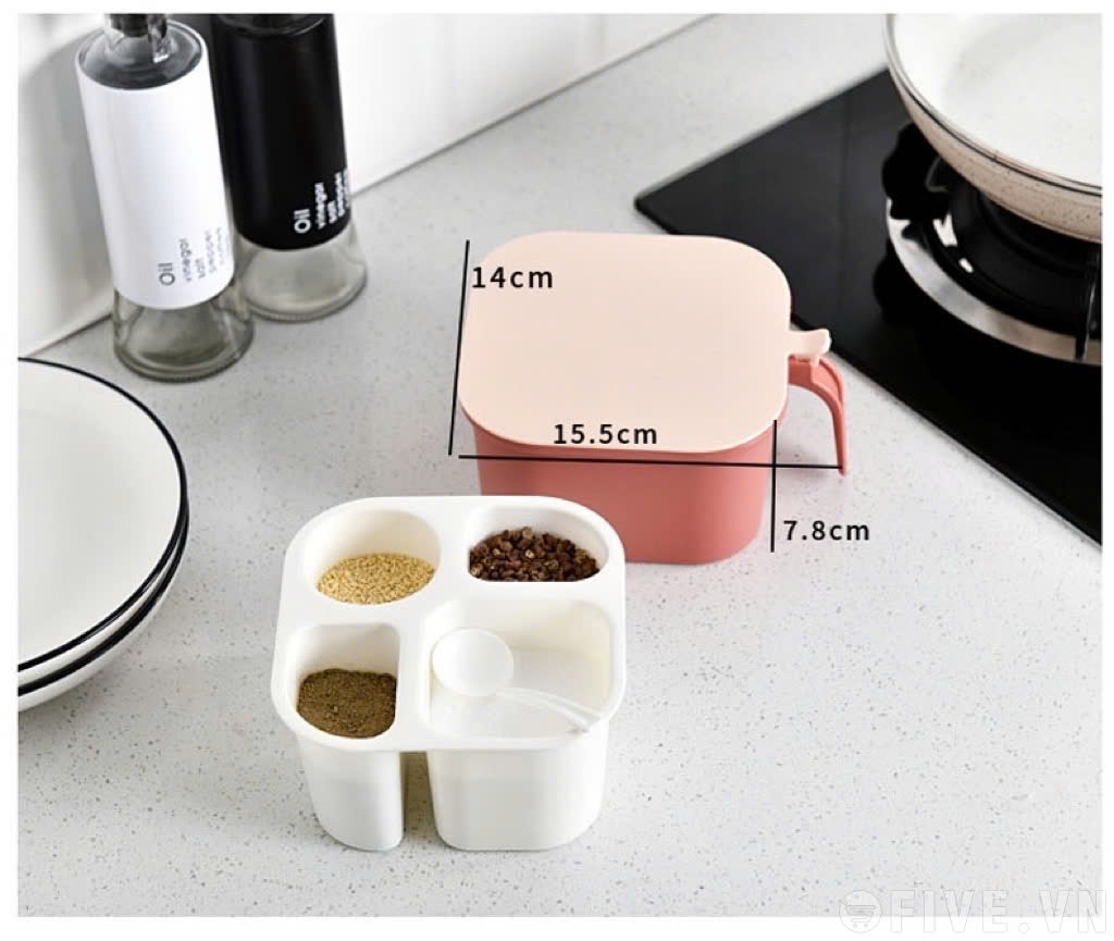 Bộ đựng gia vị 4 ngăn tiện dụng giúp bạn bảo quản các loại gia vị một cách an toàn, vệ sinh.
