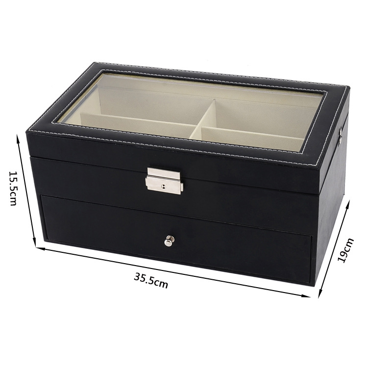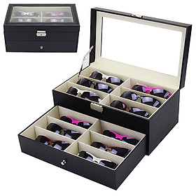 - Hộp Đựng Mắt Kính 12 Cái SAIKE S838 Bọc Da Màu Đen 2 Tầng