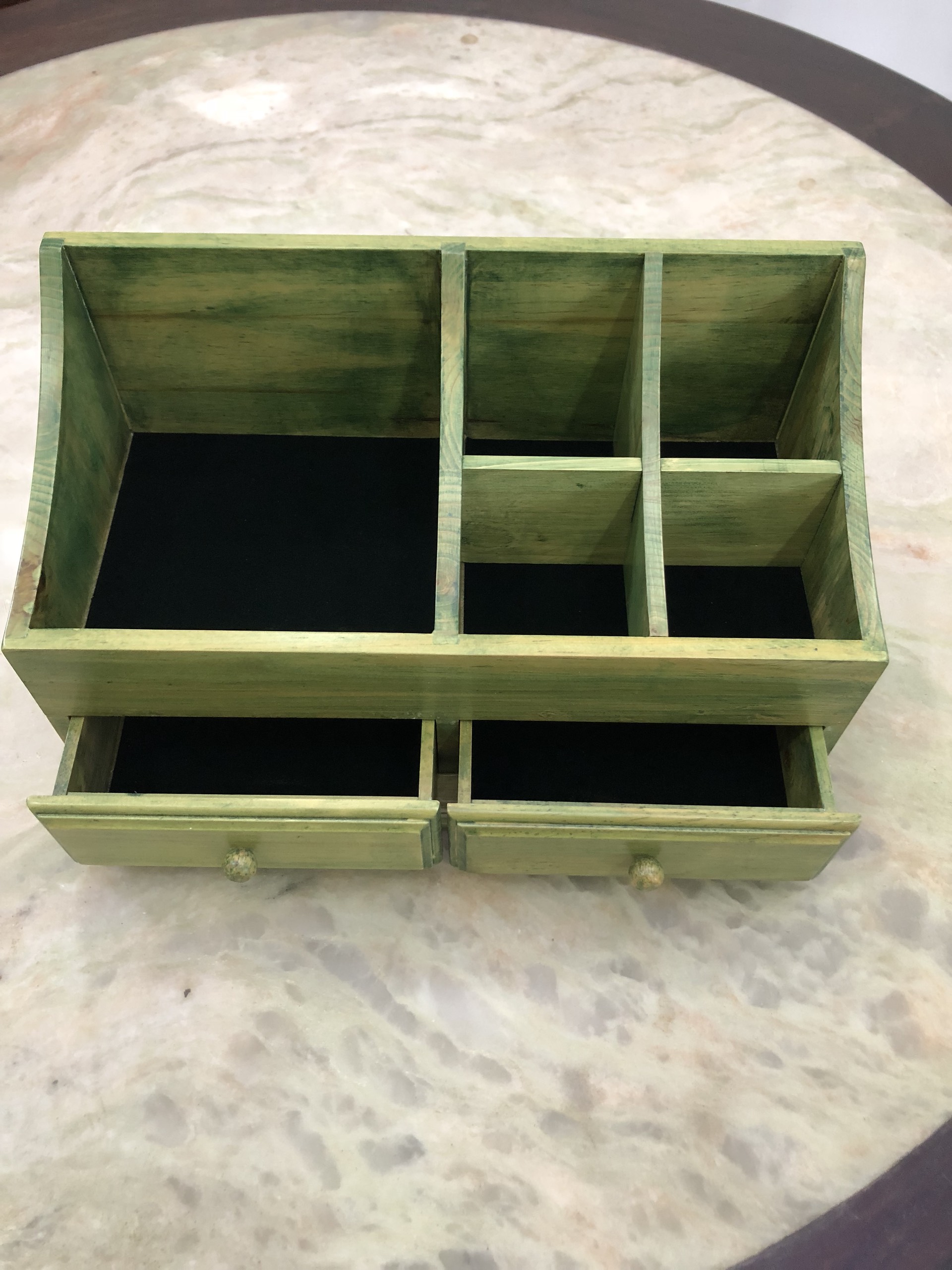 SẢN PHẨM ĐƯỢC LÀM TỪ GỖ SỒI SƠN CAO CẤP XINH XẮN, DỄ THƯƠNGKÍCH THƯỚC: DÀI 34CM X SÂU 18 CM X CAO 19 CMTHIẾT KẾ ĐẶC BIỆT CÓ NHIỀU HỘC, NHIỀU NGĂN ĐỂ ĐỰNG CÁC LOẠI TRANG SỨC, MỸ PHẨM...