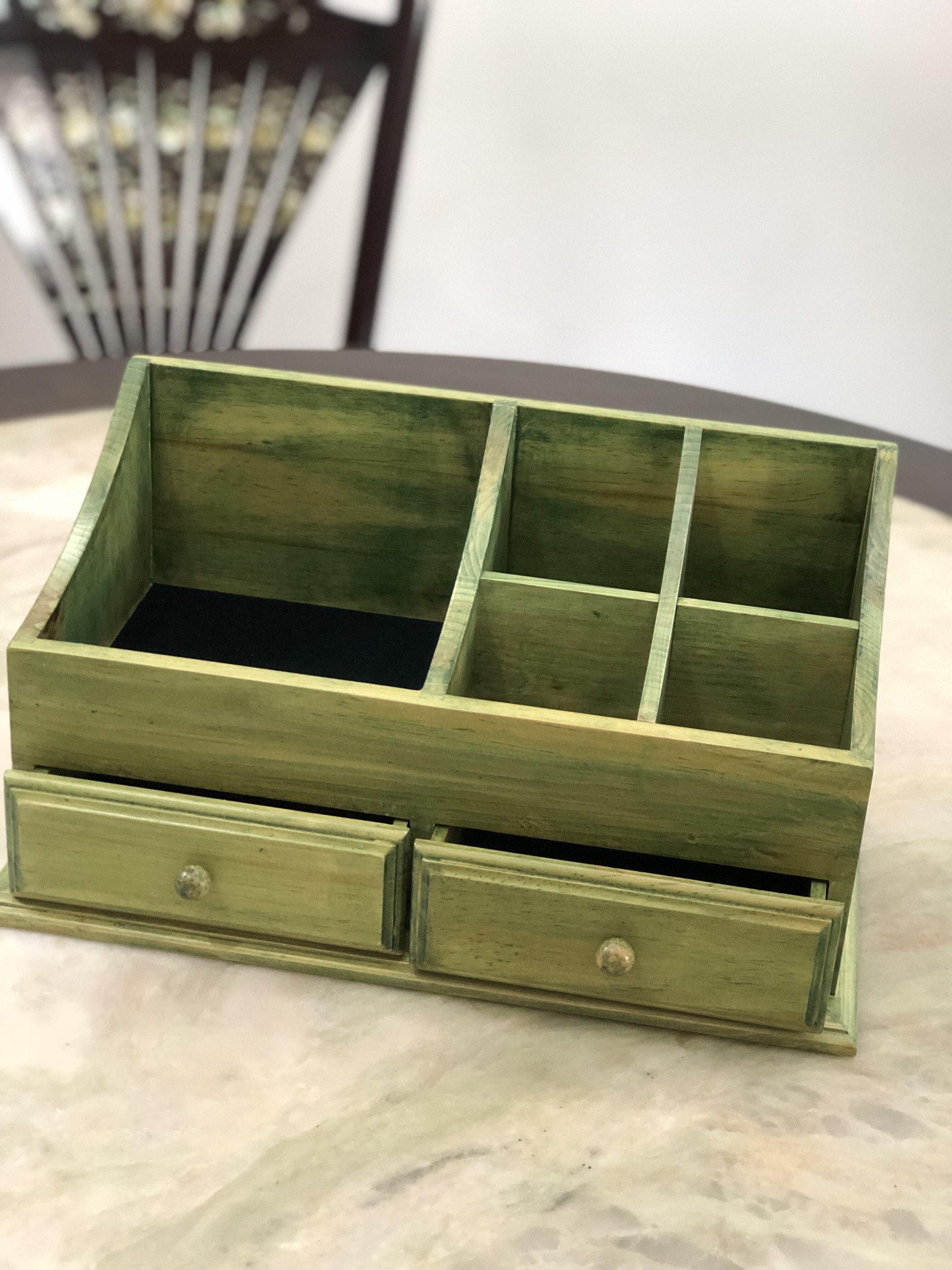 SẢN PHẨM ĐƯỢC LÀM TỪ GỖ SỒI SƠN CAO CẤP XINH XẮN, DỄ THƯƠNG KÍCH THƯỚC: DÀI 34CM X SÂU 18 CM X CAO 19 CM THIẾT KẾ ĐẶC BIỆT CÓ NHIỀU HỘC, NHIỀU NGĂN ĐỂ ĐỰNG CÁC LOẠI TRANG SỨC, MỸ PHẨM
