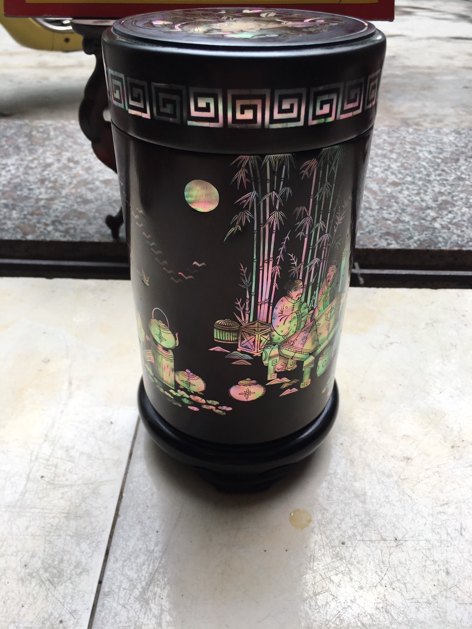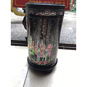 _ Hộp đựng trà ,chè được làm bằng chất liệu gỗ mun hoa ,tự nhiên 100% _ Kích thước cao 20 đk tròn 11cm _ Hộp đựng trà ,chè được trạm khắc nhiều hoa văn