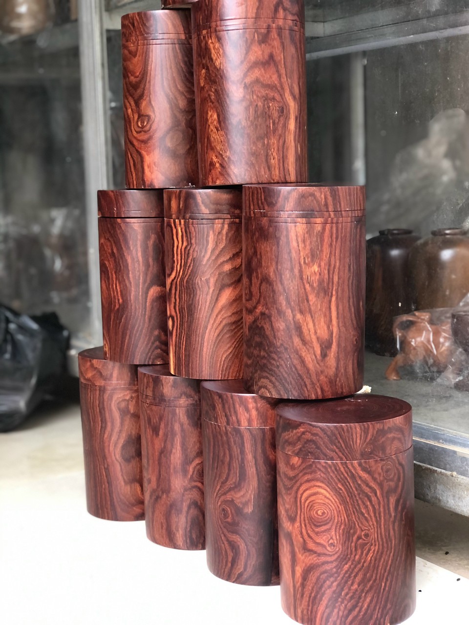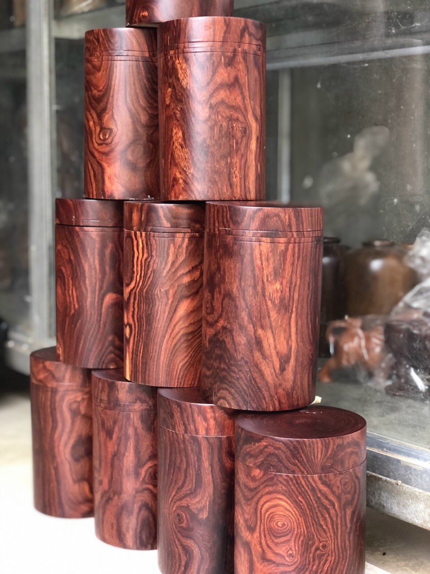 _ Hộp đựng trà ,đựng trà được làm bằng chất liệu gỗ trắc tự nhiên 100% ,Và được làm bóng mờ giữ lại vân gỗ tự nhiên Kích thước: Cao 20cm x đường kính 11cm