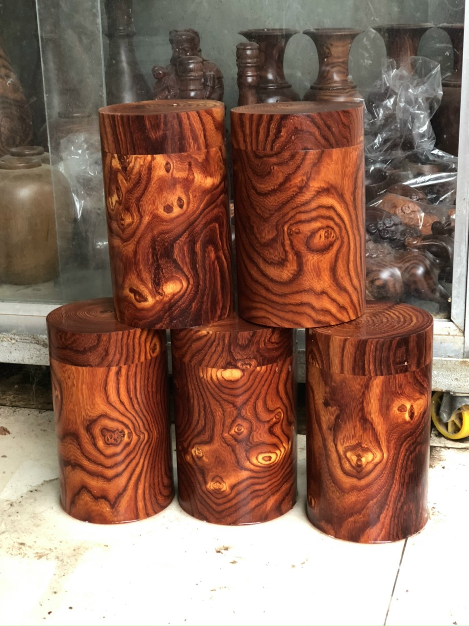 Hộp trà tròn gỗ trắc dây. Cao 20cm. LH: 0983432462