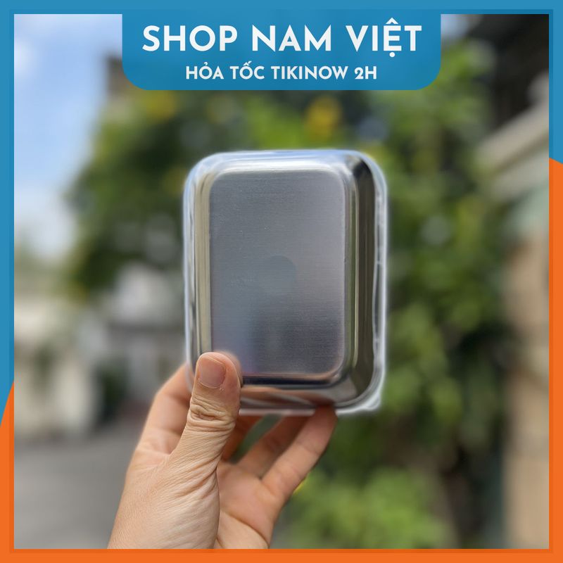 hông tin sản phẩm - Chất liệu: inox 304 + Nắp nhựa PP - Kích thước: Dài 13,5cm x Rộng 10,5cm x Cao 6cm - Màu sắc: bạc - Bộ sản phẩm gồm: 1 hộp