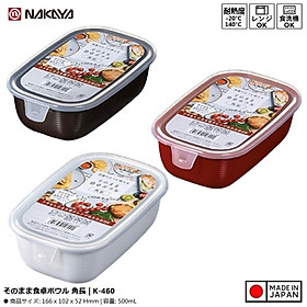 Hộp nhựa dùng trong lò vi sóng Nakaya 500ml ■ Xuất xứ: Nhật Bản | MADE IN JAPAN ■ NSX: Nakaya Chemical Industry Co., Ltd (Japan) ■ Model: K-460 ■ Kích thước: 166x102x52Hmm ■ Màu