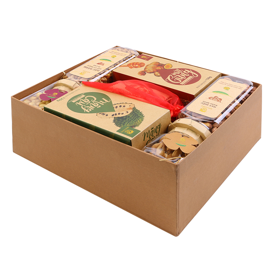 1. Mô tả sản phẩm - Set quà được thiết kế đặc biệt để mang lại trải nghiệm thú vị và lành mạnh cho người nhận. - Bao gồm một loạt các sản phẩm ăn