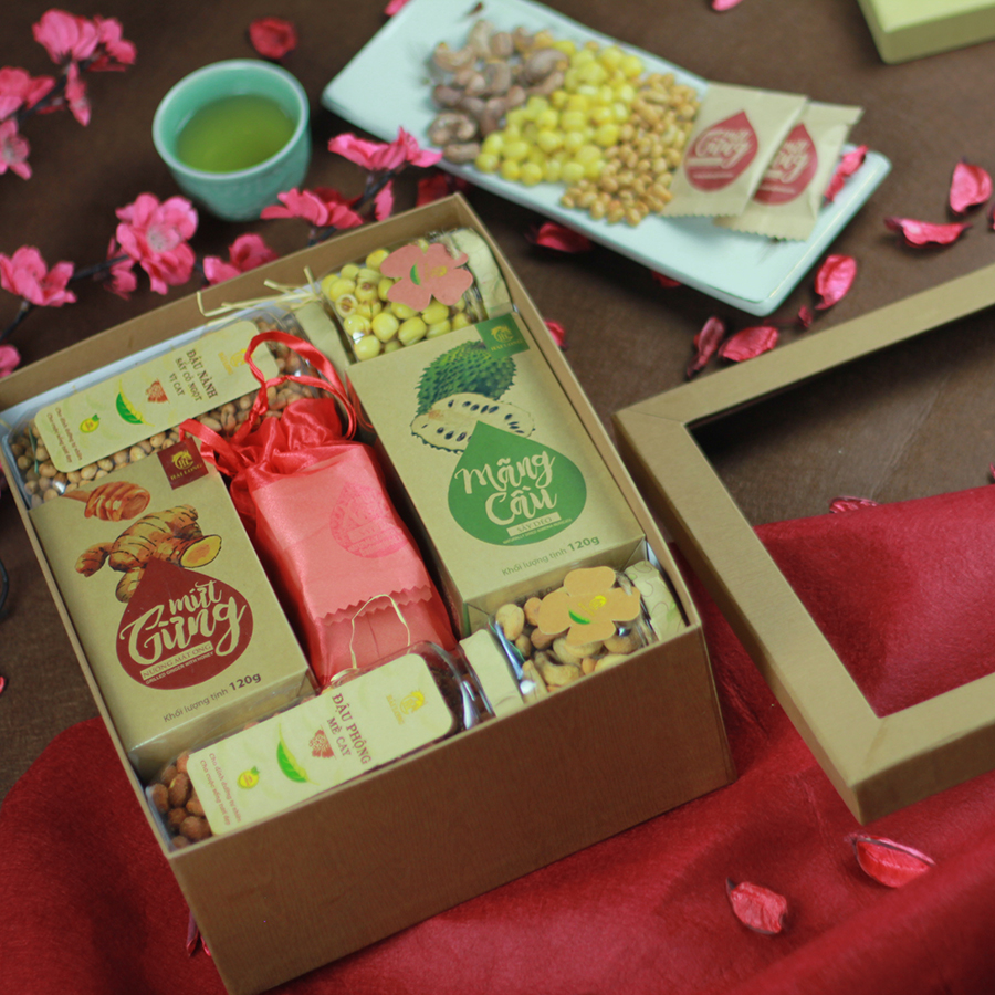 Hộp Quà Tết Thực Phẩm Cao Cấp Hải Long 05A các loại hạt và trái cây có vị ngon ngọt với những hương vị từ cay, chua cho đến ngọt, bùi đặc trưng cho hương