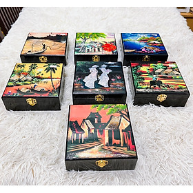 Kích thước: hộp hình vuông 16cm, bên trong có lót nhung và có gương.