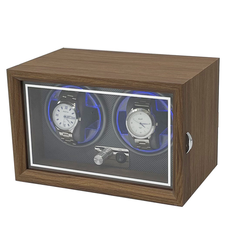Hộp Xoay Đồng Hồ Cơ 2 Ngăn SAIKE S2005 Vỏ Gỗ Có Đèn LED - Tủ Đồng Hồ Quay Cao Cấp