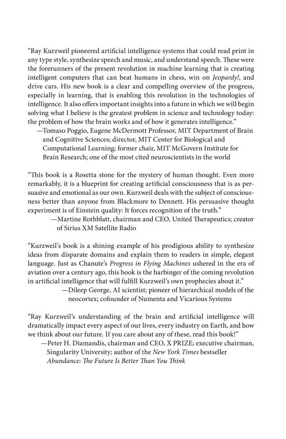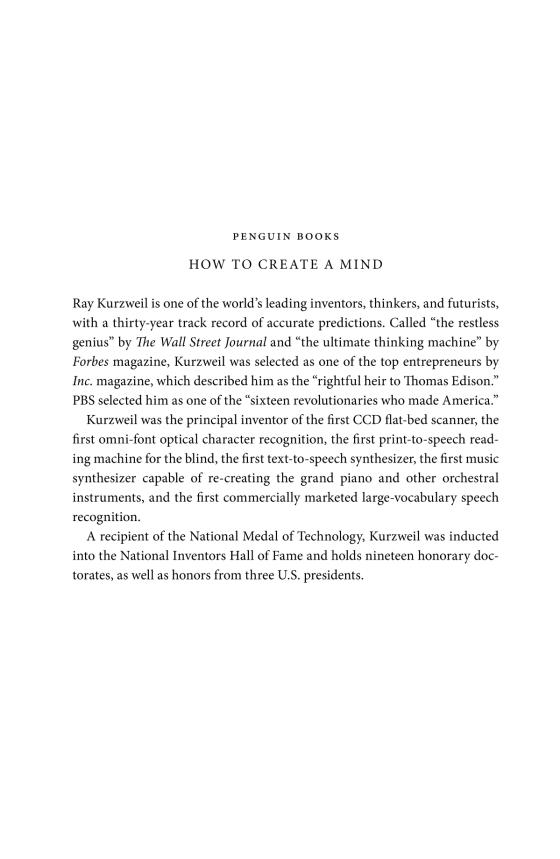 Certain to be one of the most widely discussed and debated science books of the year, How to Create a Mind is sure to take its place alongside Kurzweil’s previous classics which include Fantastic Voyage: Live Long Enough to Live Forever and The Age of Spiritual Machines.