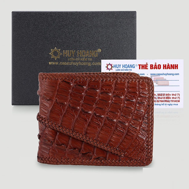 - Tên sản phẩm: Ví nam Huy Hoàng da cá sấu đan viền 2 gai màu đen, nâu đất, vàng, nâu đỏ