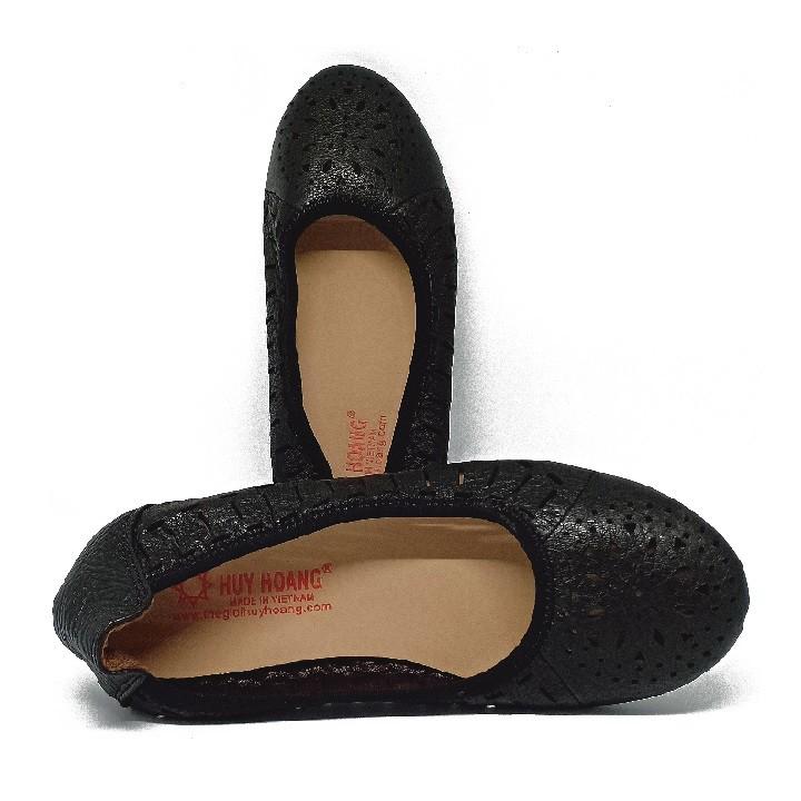 ✨HT7951 - Giày nữ hoa văn Huy Hoàng da bò màu đen