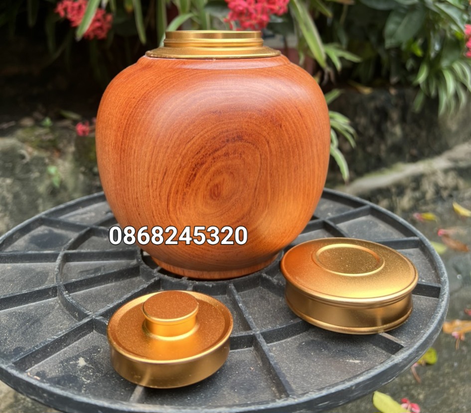 Mua tại Tiktok_ Hũ đựng trà ( chè ) được làm bằng chất liệu gỗ hương đá liền khối tự nhiên 100%