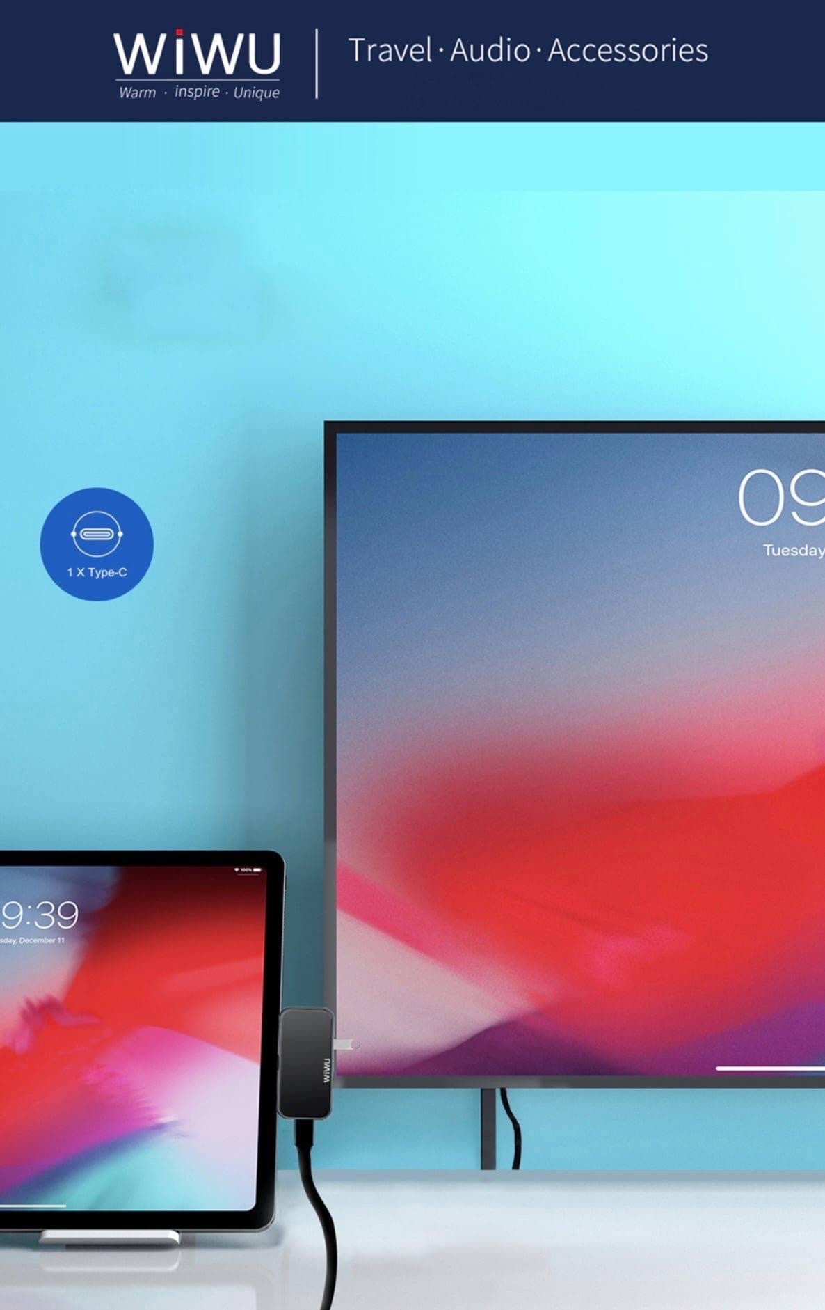 Hub #Wiwu Alpha 7 in 1 USB - C Hub #A731HC 3*USB3.0+ SD+TF+4K HDMI+100W PD Thương hiệu: #Wiwu Chất liệu: Hợp kim nhôm Thông số kỹ thuật: 3 cổng USB 3.0+1, 1 cổng TF, 1 cổng HDMI, PD, 1 cổng SD Đầu ra HDMI 4K: phản chiếu hoặc mở rộng màn hình của bạn với cổng HDMI của bộ chuyển đổi USB C và truyền trực tiếp video 4K UHD hoặc full HD 1080P tới HDTV, màn hình hoặc máy chiếu cho bữa tiệc hình ảnh như rạp chiếu phim. Hỗ trợ sạc PD: Ba cổng USB hỗ trợ tốc độ truyền tải, kết nối với #điện thoại thông minh, #máy tính bảng và #ổ cứng của bạn để truyền dữ liệu dễ dàng.